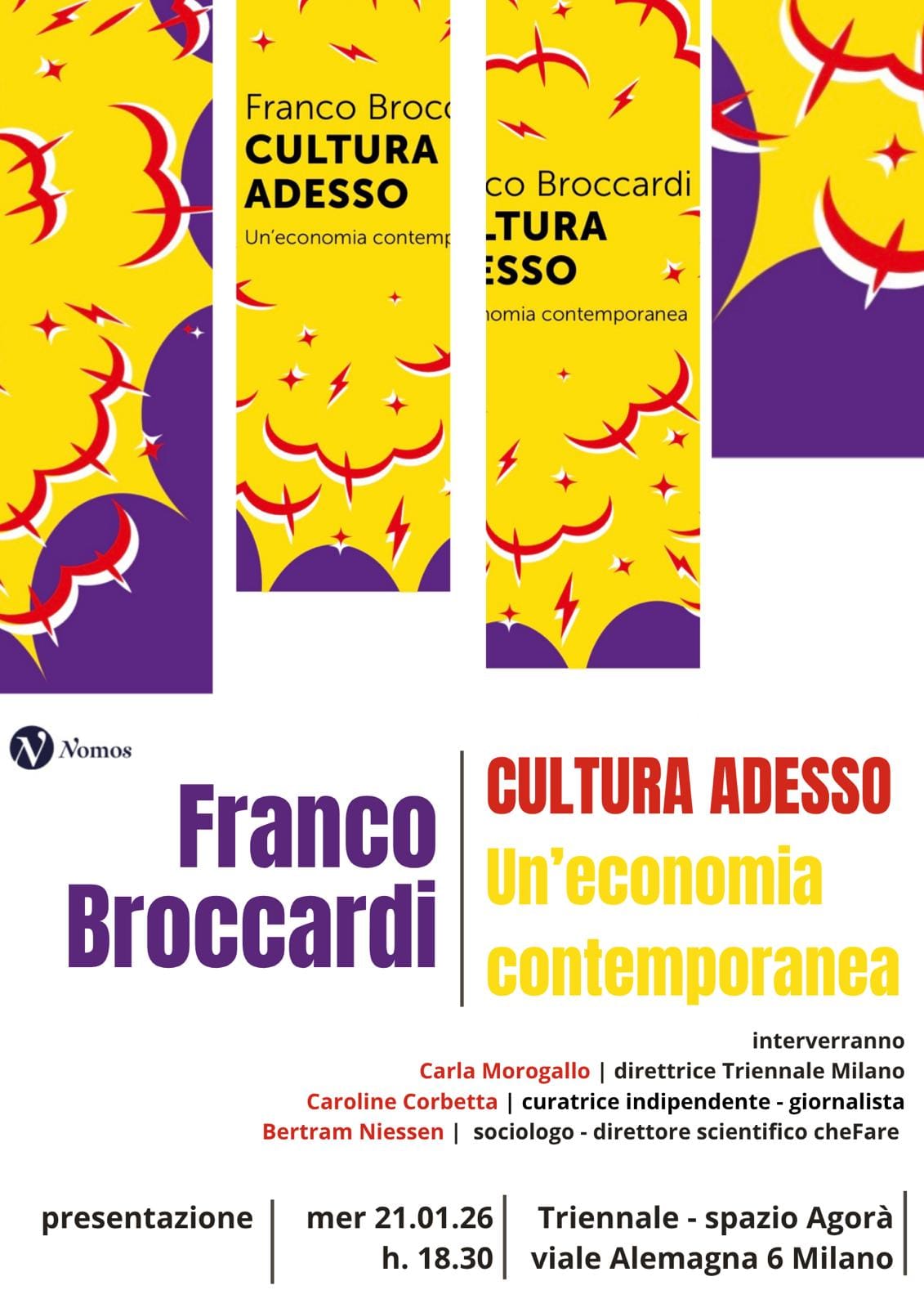 È uscito il 21 novembre 2025 il mio primo libro di Franco Broccardi edito da Nomos. Il libro è disponibile sul sito di Nomos, su Amazon e sulle altre principali piattaforme online. La prefazione è a cura di Paola Dubini, docente Università Bocconi Milano, e la postfazione di Anna Chiara Cimoli, storica dell'arte e consulente museale.